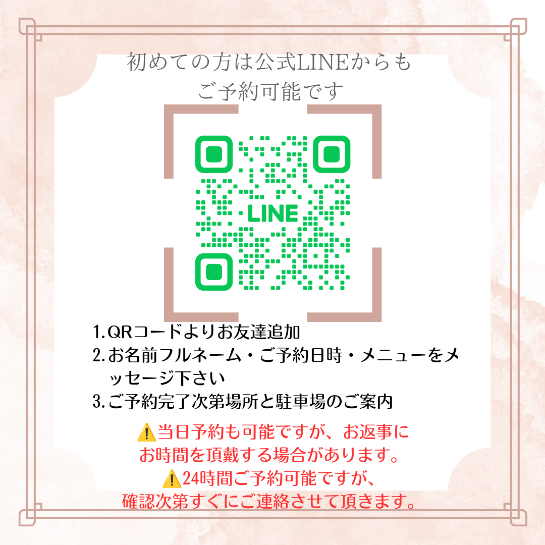 ご予約・お問い合わせはホームページ、または公式LINEから承っております✨